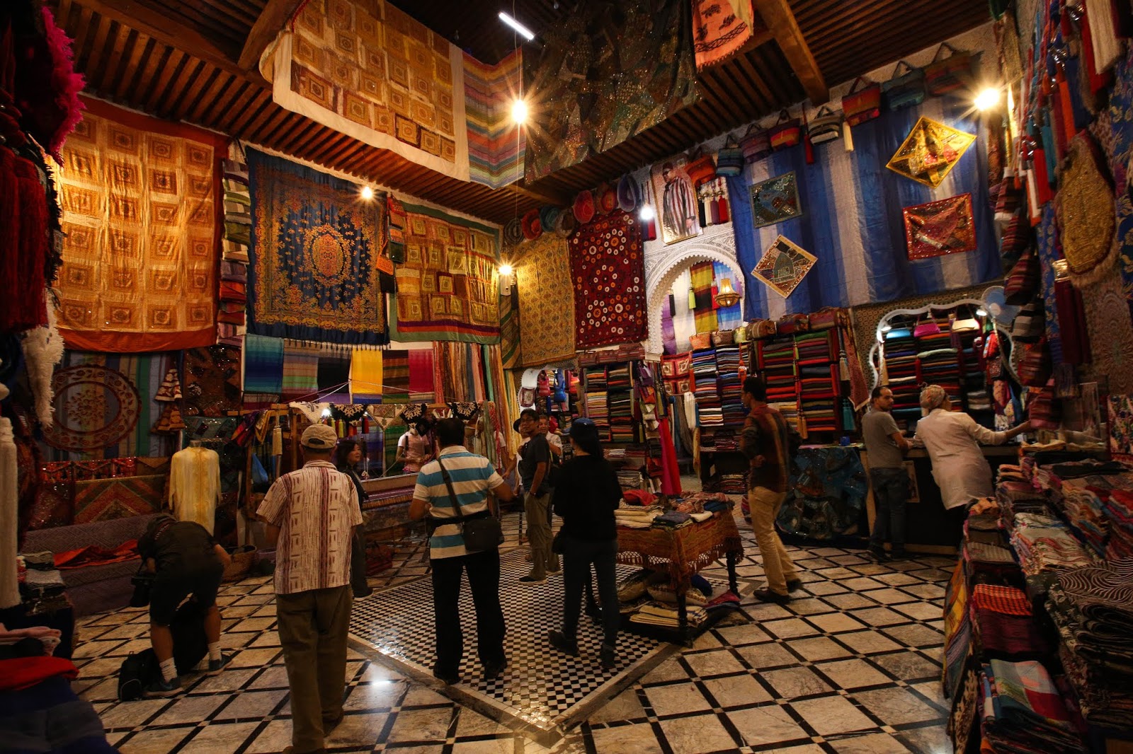 Seffarine,那裏有很多製造銅器的店鋪,這個行業在香港已式微了.其後到一間地氈工廠參觀.在摩洛哥有很多工業都是採用幾百年前的方法例如染皮革.行完舊城區便返回Royal