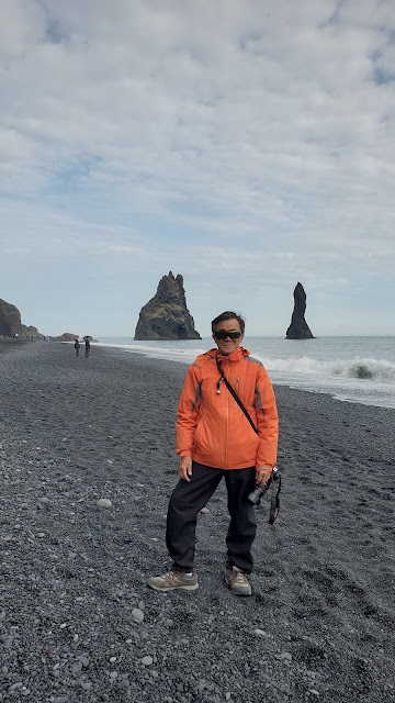 2023年7月22日最後我們到位於維克鎮附近的黑沙灘Reynisfjara,這個黑沙灘是冰島最出名的黑沙灘,曾評為全世界十大最美麗沙灘之一.黑沙灘是由火山噴發後,高温岩漿遇海水迅速冷卻後成為黑色砂礫,再經海水不斷冲刷堆積而成.Reynisfjara旁邊有一排排列整齊的巨大玄武岩石柱,是絕佳的打卡地方.